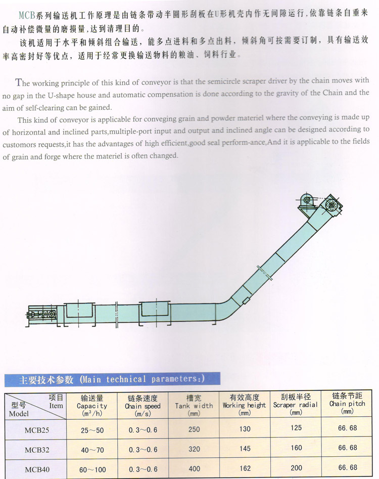 MCB series self-cleaning (U-shaped) inclined scraper conveyor
